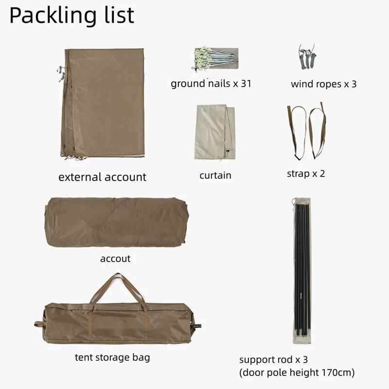 Inner tent:210T polyester, mesh | Outer Fabric:210T Oxford FABRIC, Silver Coating | Floor: 210D Oxford fabric, PU3000mm