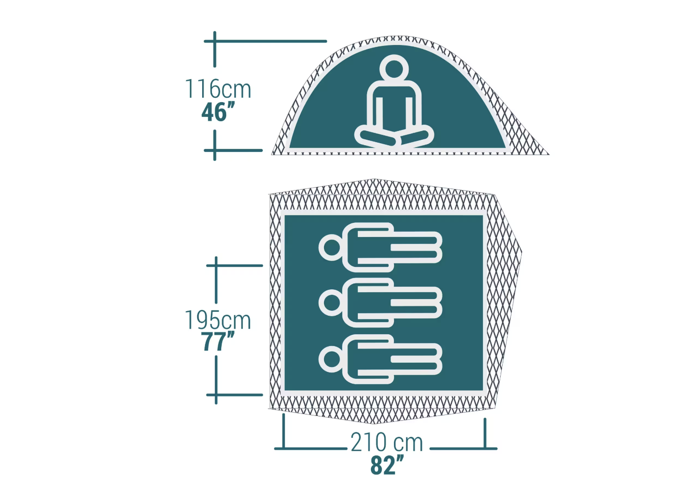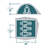 Flysheet > 2000 mm. Groundsheet > 2400 mm rating.