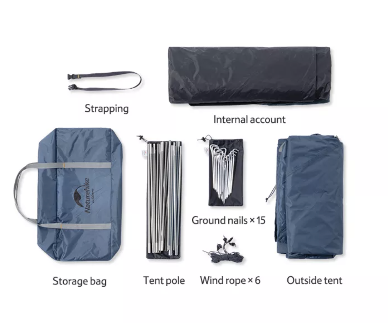 Pegs*15 , Wind Rope*6 , Pole*3 , Accessories Bag*1